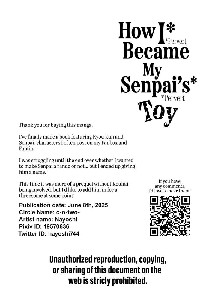 Yaoi Oneshot: Ore ga senpai no omocha ni naru hanashi; オレが先輩の玩具になる話; 關於我成為前輩玩具的故事